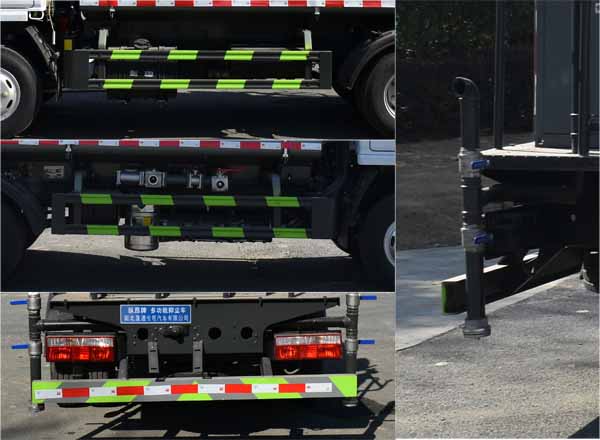 該車用途為抑塵降霾.主要裝置為罐體及噴霧裝置;罐體有效容積:3.98立方米,罐體外形尺寸(長×長軸×短軸)(mm):2900×1650×1200;ABS型號/廠家:ABS/ASR-12V-4S/4M/襄陽東風(fēng)隆誠機械有限責(zé)任公司,側(cè)、后防護材料均為:Q235碳鋼,連接方式均為:螺栓連接,后部防護截面尺寸(mm):120×50,后部防護離地高度(mm):390;隨底盤選裝駕駛室,選裝噴霧裝置樣式,選裝底盤附件位置。隨底盤選裝燃油箱,電瓶,尿素罐,儲氣筒左右安裝位置,選裝噴灑裝置樣式。 |